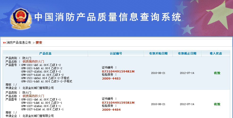 我廠生產的防火門絕對保真的檢驗報告,大家可以在中國消防信息網上查詢